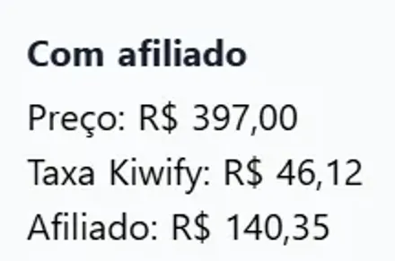 Portanto o valor recebido por venda para o afiliado é 40% sobre o valor líquido (Total - taxas) = R$140,35/por venda